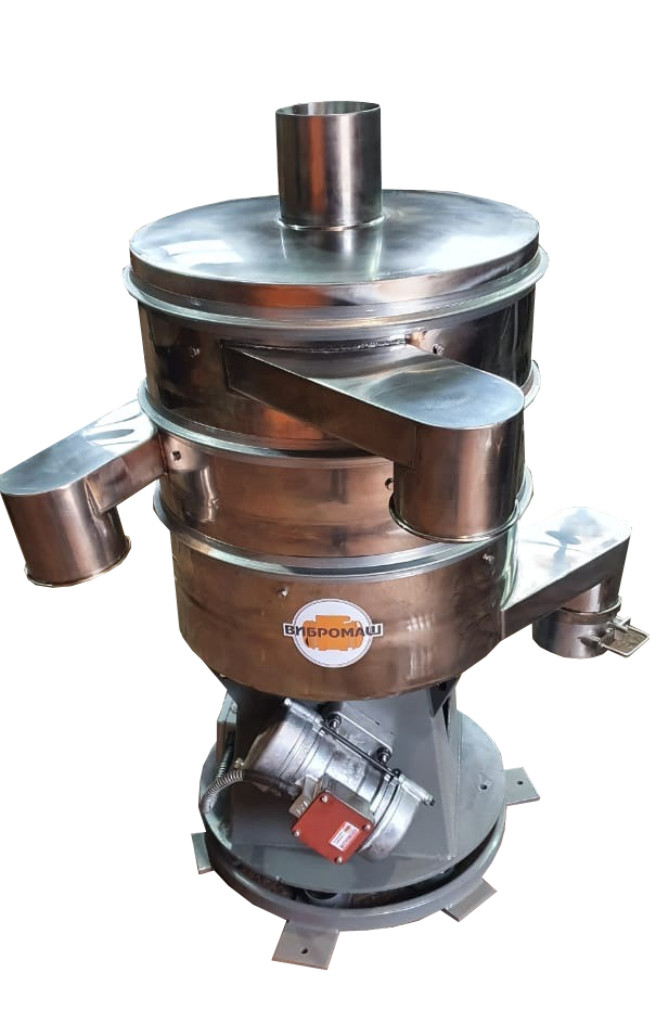 Сита круглые вибрационные (вибросепараторы) предназначены для сверхтонкой и тонкой размерной классификации порошкообразных, зернистых и кусковых сухих материалов пищевой промышленности – заводы по производству сухого молока, кондитерские фабрики, масложиркомбинаты, мясокомбинаты, производители ароматизаторов и специй и многие другие предприятия; в химической промышленности - предприятия, изготавливающих сварочные электроды, синтетические моющие средства, химические удобрения, ПВХ; в строительной отрасли - сухие строительные смеси; в фармацевтике – для контрольного просева препаратов и во многих других технологических процессах рассева сыпучих материалов, а так же в производстве металлических и химических порошков, компонентов красителей, сухих строительных смесей и пр. Круглые вибросита поставляются, как правило, в однодечном ( рассев на 2 фракции) и двухдечном варианта (рассев на три фракции). По требованию Заказчиков на вибросито может быть установлена одна дополнительная дека (рассев материала на 4 фракции) и установлены сетки с необходимыми Заказчику размерами ячеек.