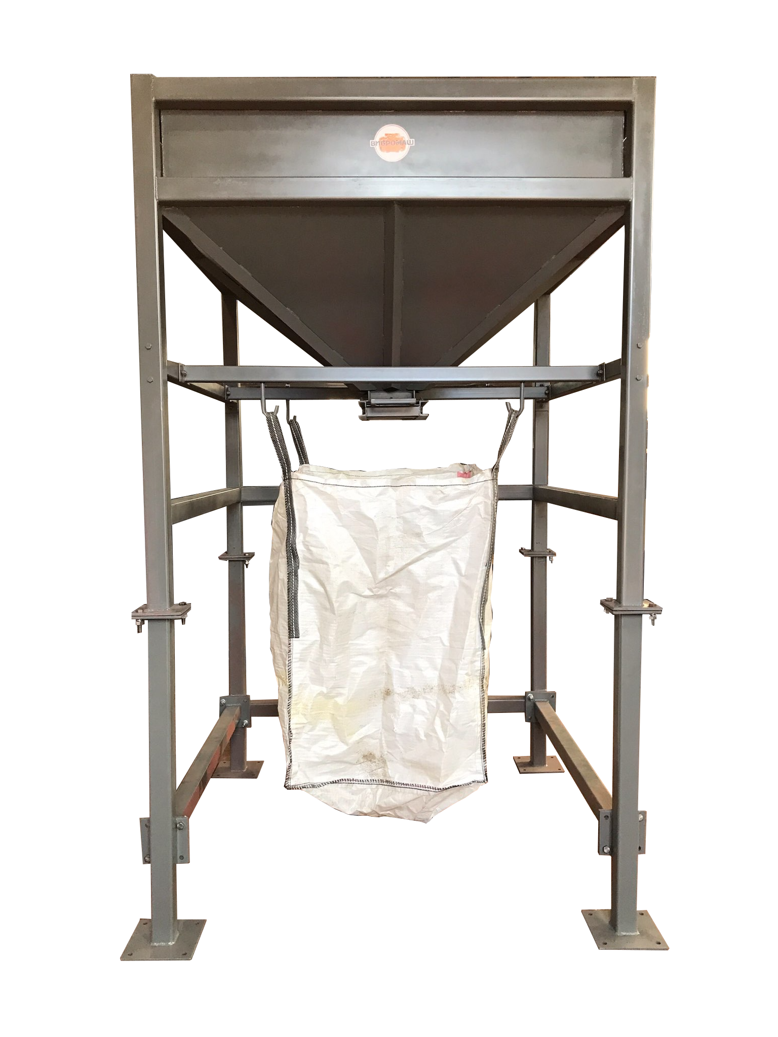 Принцип работы: Биг-Бэг с содержимым подается в приемный бункер, по центру которого размещен нож для вспарывания. Биг-Бэг вскрывается и содержимое начинает выгружаться самотеком, для повышения эффективности процесса растаривания, а также для удаления остатков материала с внутренней поверхности бункера, станция оснащается электромеханическим вибратором общего назначения.