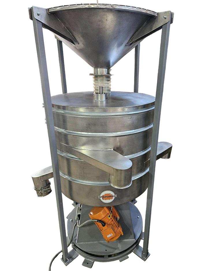 Сита круглые вибрационные (вибросепараторы) предназначены для сверхтонкой и тонкой размерной классификации порошкообразных, зернистых и кусковых сухих материалов пищевой промышленности – заводы по производству сухого молока, кондитерские фабрики, масложиркомбинаты, мясокомбинаты, производители ароматизаторов и специй и многие другие предприятия; в химической промышленности - предприятия, изготавливающих сварочные электроды, синтетические моющие средства, химические удобрения, ПВХ; в строительной отрасли - сухие строительные смеси; в фармацевтике – для контрольного просева препаратов и во многих других технологических процессах рассева сыпучих материалов, а так же в производстве металлических и химических порошков, компонентов красителей, сухих строительных смесей и пр. Круглые вибросита поставляются, как правило, в однодечном ( рассев на 2 фракции) и двухдечном варианта (рассев на три фракции). По требованию Заказчиков на вибросито может быть установлена одна дополнительная дека (рассев материала на 4 фракции) и установлены сетки с необходимыми Заказчику размерами ячеек.