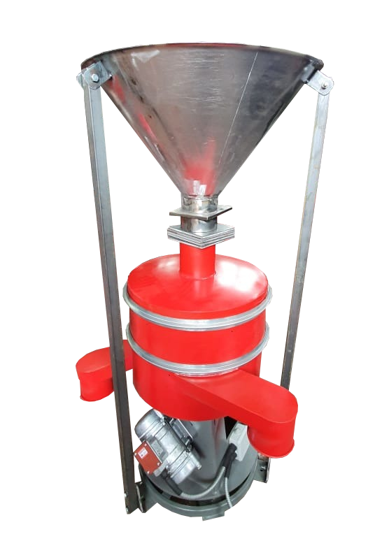 Сыпучая масса равномерно подаётся через верхний центральный патрубок с помощью питающего устройства (шлюзовой или шнековый питатель, цепной конвейер, дозатор и т.д.) в сито. Последовательно проходя через несколько сит с разными размерами ячеек, исходный продукт разделяется на фракции благодаря колебаниям вибрационной рамы. Частицы размером меньше ячейки сита – проходят сквозь него, а более крупные – задерживаются на сетке и под воздействием колебаний отводятся через боковой патрубок. В одном вибросепараторе может быть установлено от 1 до 3-х дек (сит), что обеспечивает разделение материала от 2 до 4 фракций.