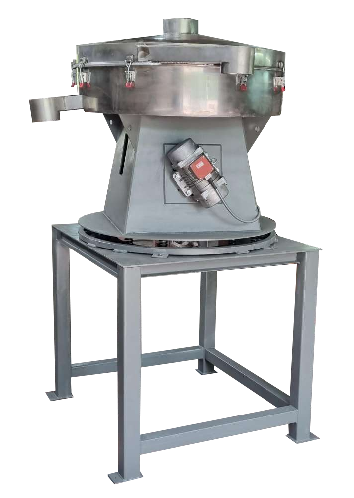 Сыпучая масса равномерно подаётся через верхний центральный патрубок с помощью питающего устройства (шлюзовой или шнековый питатель, цепной конвейер, дозатор и т.д.) в сито. Последовательно проходя через несколько сит с разными размерами ячеек, исходный продукт разделяется на фракции благодаря колебаниям вибрационной рамы. Частицы размером меньше ячейки сита – проходят сквозь него, а более крупные – задерживаются на сетке и под воздействием колебаний отводятся через боковой патрубок.